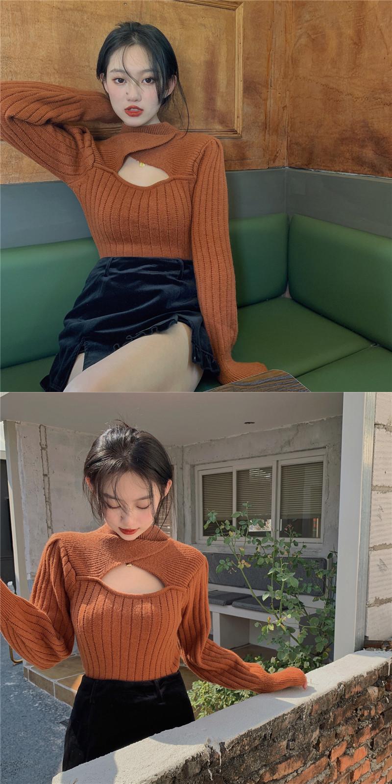 ニットセーター ショートスリムシャツ オータムウィンターホワイトトップス 秋物 冬物 ブラックストロベリース68702540456