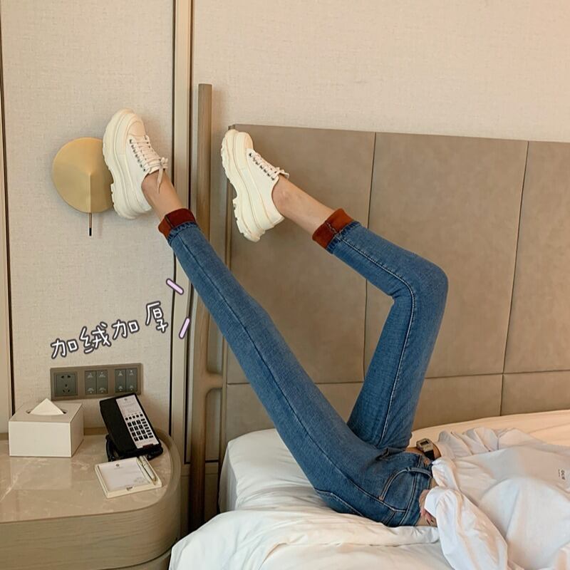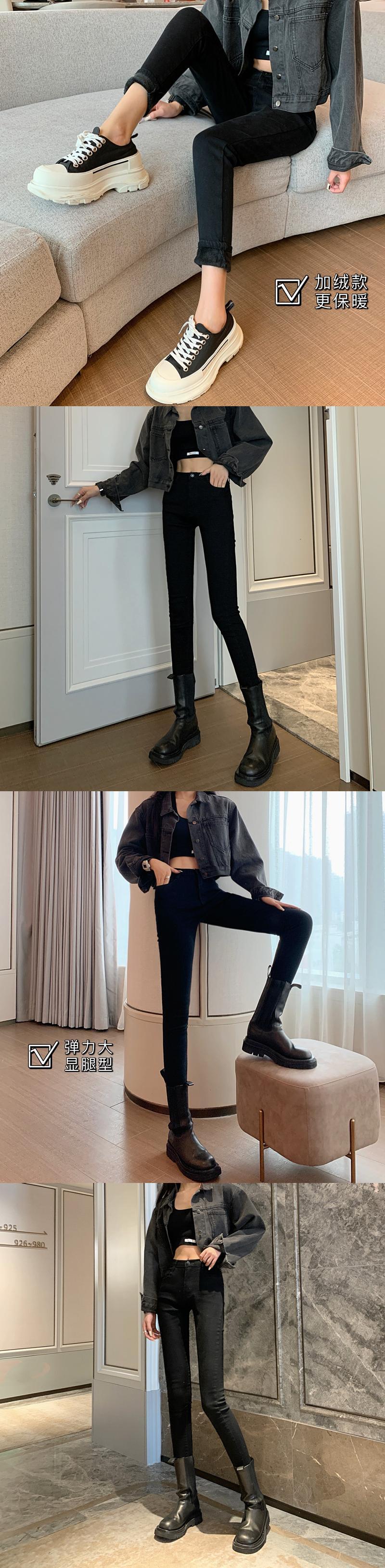 ジーンズ ベルベットブラックオータムウィンタースリムハイウェストウェストパンツ 秋物 冬物 ブラックストロベリース94293129603