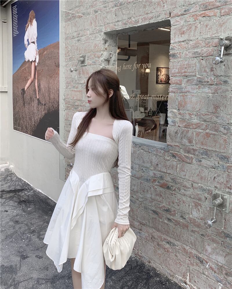 ドレス レディースホワイトニットミディスカート オータムウィンター ロング 秋物 冬物 ブラックストロベリース2449711755