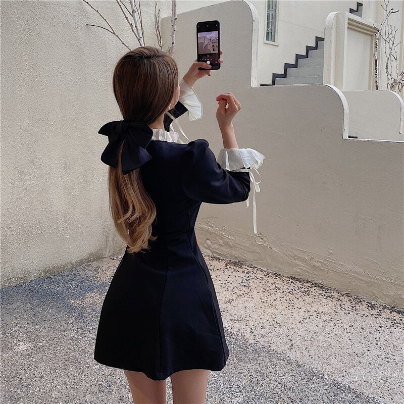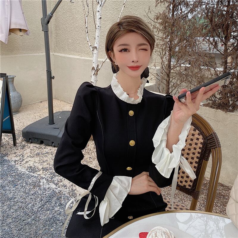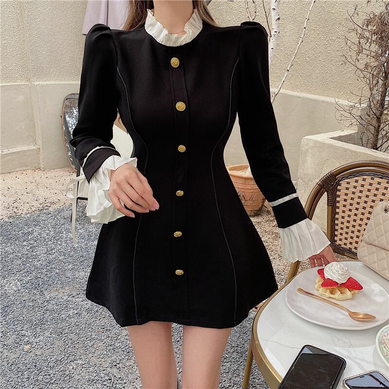 ドレス スタイルスタンダードブラックショートスカート オータムウィンター ロング レトロ 秋物 冬物 ブラックストロベリース20821057853