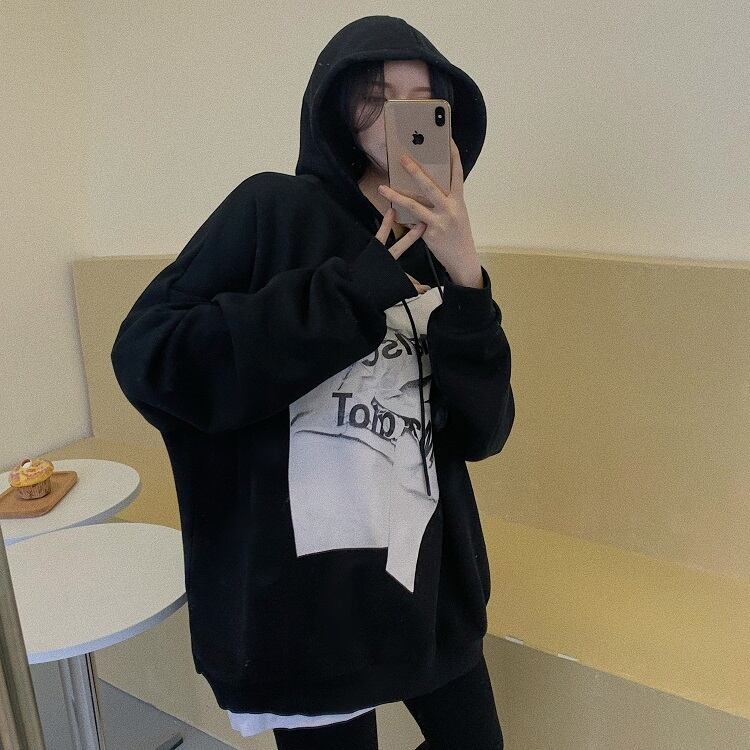 フードセーター コート オータムウィンターベルベットルーズシャツ ロング 秋物 冬物 ブラックストロベリース25673999494