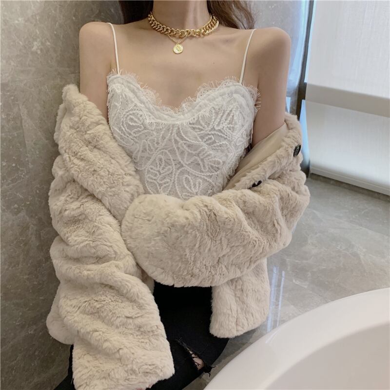 オータムウィンターショートスリムレースホワイトノースリーブトップス 秋物 冬物 ブラックストロベリース23486005871