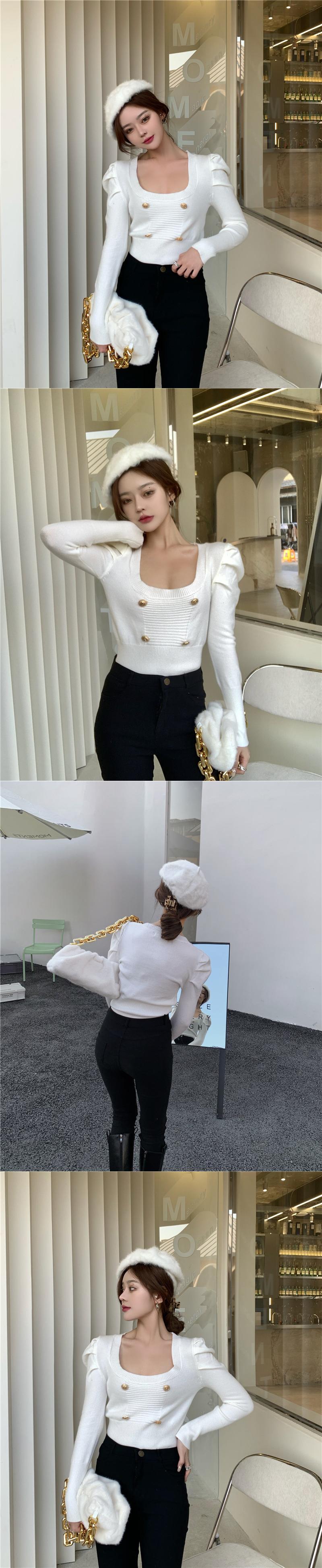 ニットセーター オータムウィンターショートトップス ロング 秋物 冬物 ブラックストロベリース64532060193