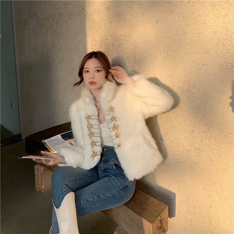 フェイクファーショートコート ルーズカジュアルホワイトオータムウィンター 秋物 冬物 ブラックストロベリース57061483401