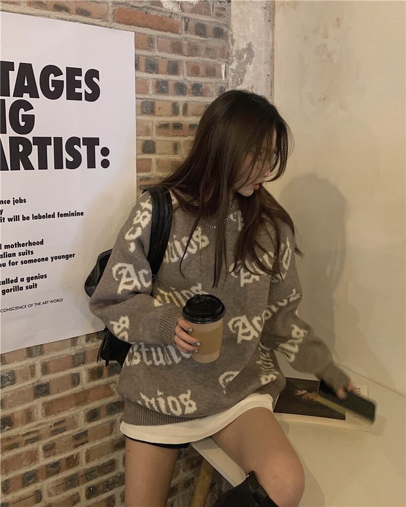 セーター ジャケット オータムウィンタースタンダードスタイルルーズプルオーバー トップス レトロ 秋物 冬物 ブラックストロベリース22414872783