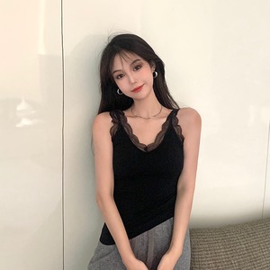 オータムウィンターベルベットスリムレースブラックノースリーブトップス 秋物 冬物 ブラックストロベリース67022607449