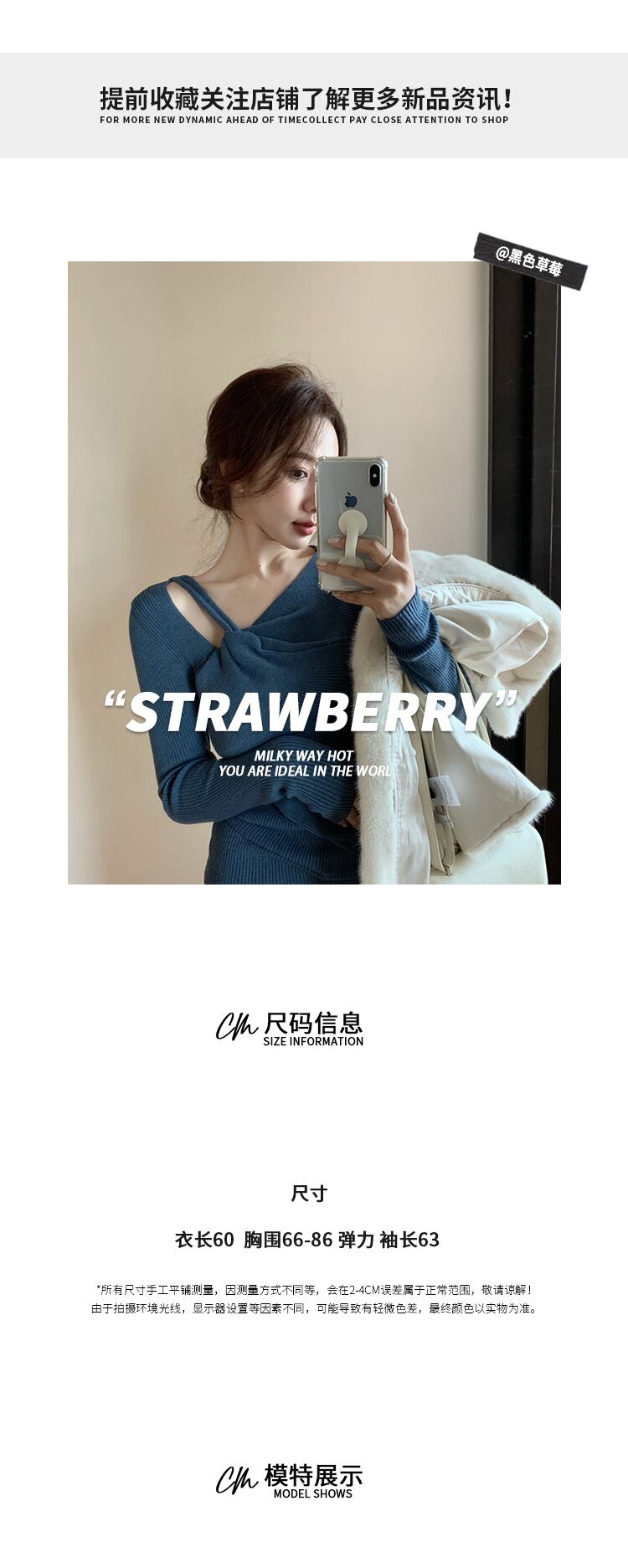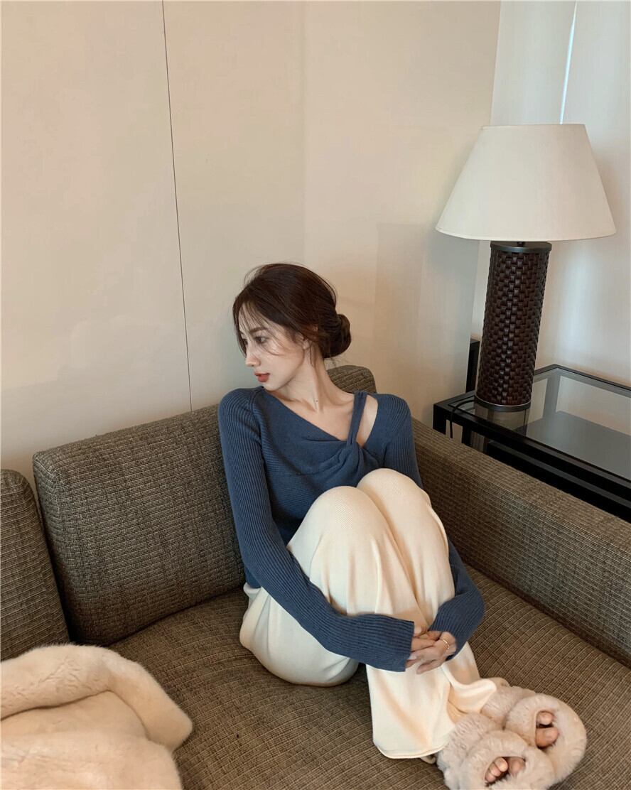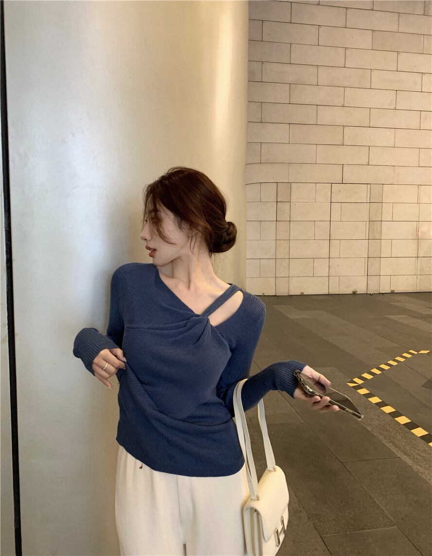 セーター シャツ オータムウィンターブルーVネックニットトップス 秋物 冬物 ブラックストロベリース95955479016