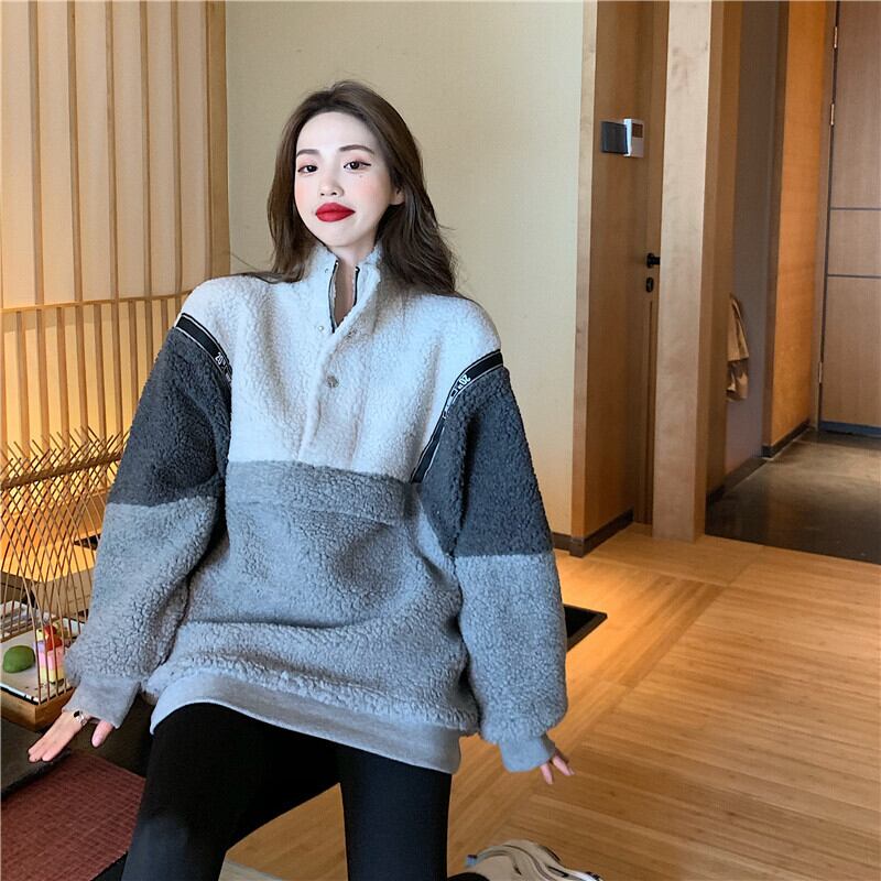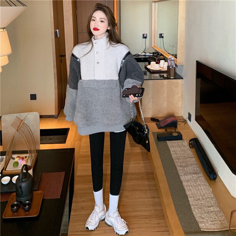 ウールセーター ジャケット レディースウィンターベルベットルーズジッパープルオーバー トップス 冬物 ブラックストロベリース55900472281