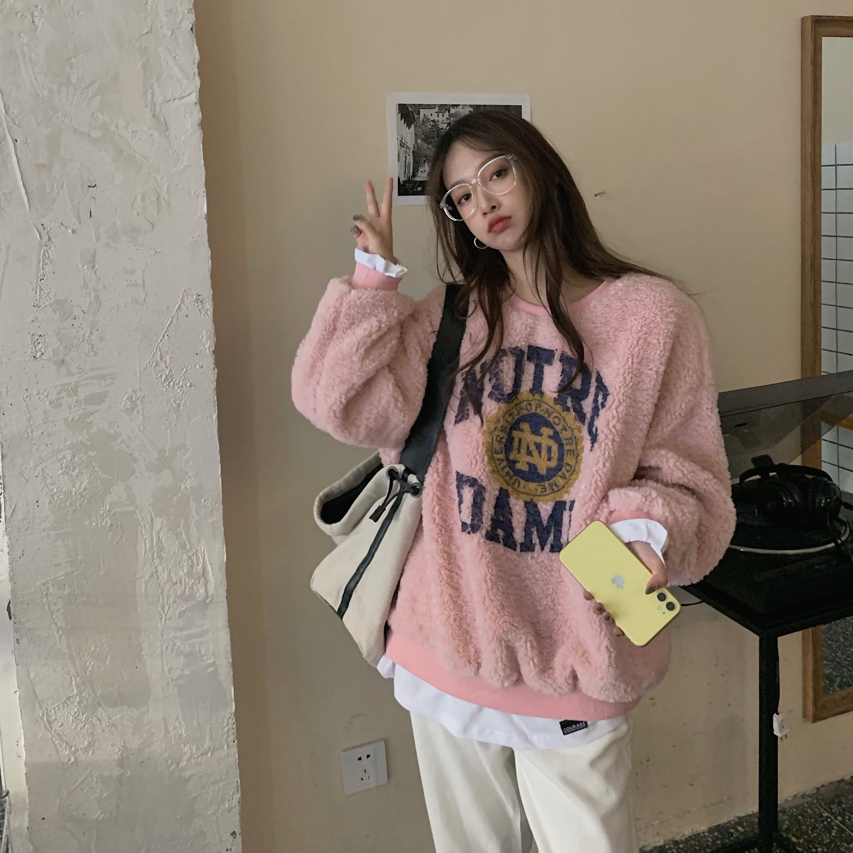 ウールセーター ジャケット レディースウィンターベルベットルーズスタイルトップス 冬物 ブラックストロベリース87045250870