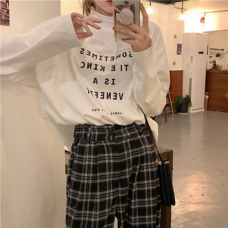 ホワイトカラーシャツ Tシャツ オータムウィンタールーズトップス ロング 秋物 冬物 ブラックストロベリース34431868018