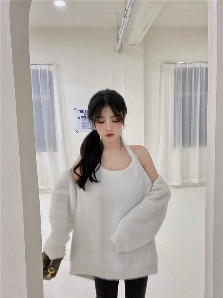セーター レディースルーズホワイトホルターニットオータムウィンタージッパートップス 秋物 冬物 オフショルダー ブラックストロベリース6156984114