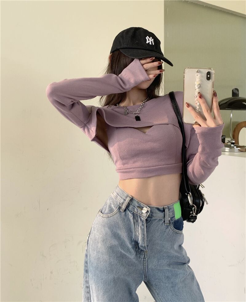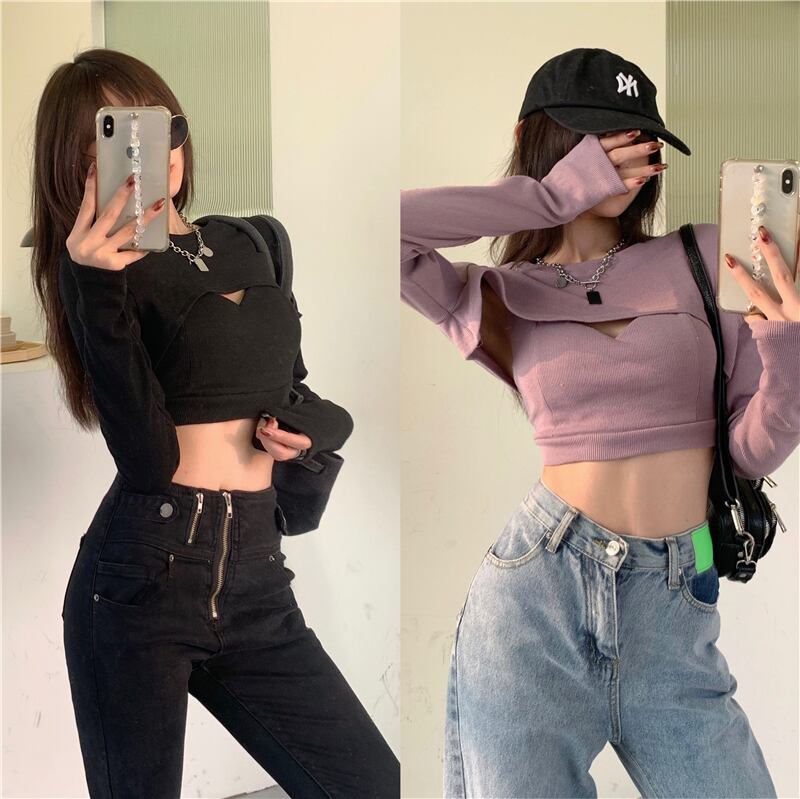 ニットセーター シャツ オータムウィンターブラウス ショートスリムフィット長袖スリーブトップス ロング 秋物 冬物 ブラックストロベリース6992010328