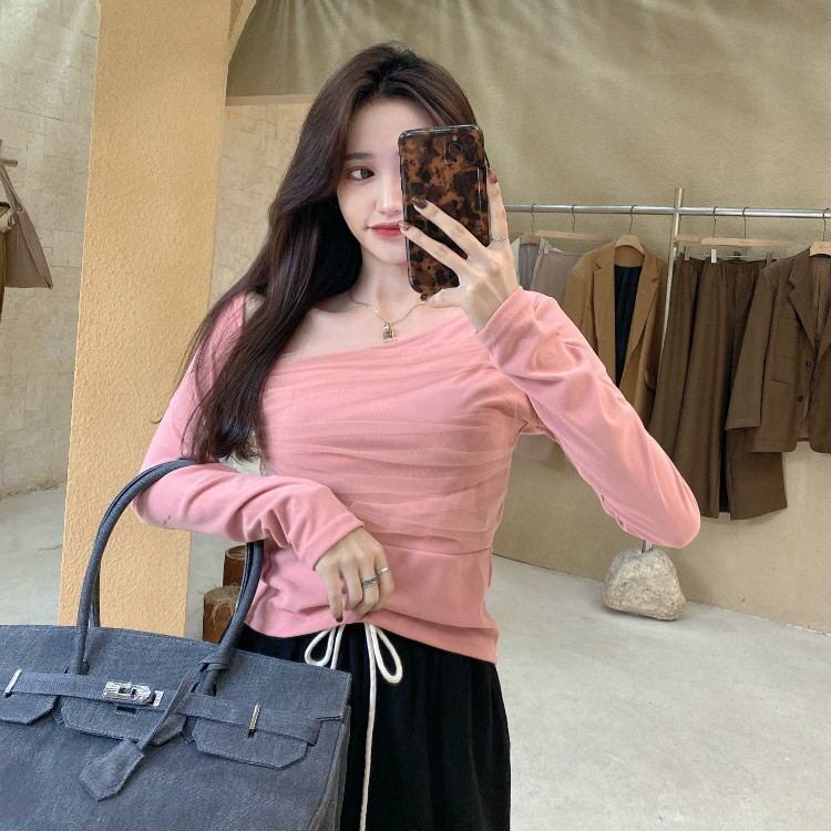 シャツ Tシャツ レディーススタイルストラップレスショート長袖スリーブトップス ロング ウィンター 冬物 ブラックストロベリース21360643349