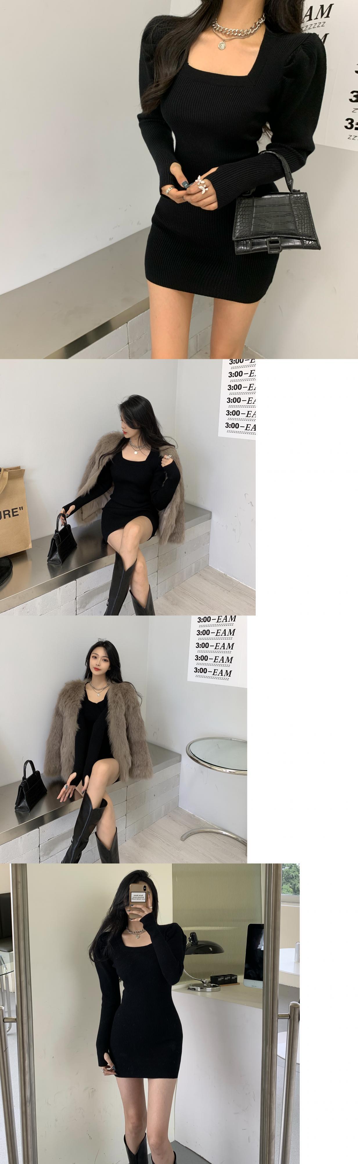 色:黒のパフスリーブニットワンピース,グレーのパフスリーブニットワンピース,アプリコットパフスリーブニットワンピース,コーヒーカラーのパフスリーブニットワンピース
