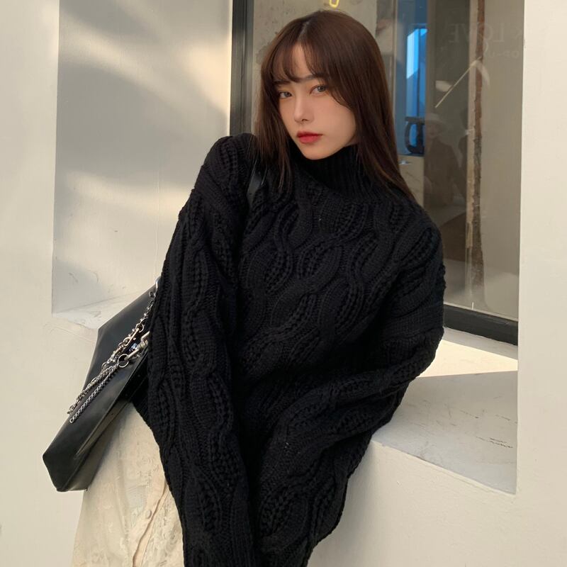 セーター ルーズニットオータムウィンターホワイトスタイルプルオーバー 秋物 冬物 ブラックストロベリース82503595970