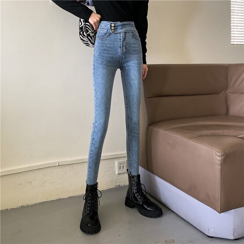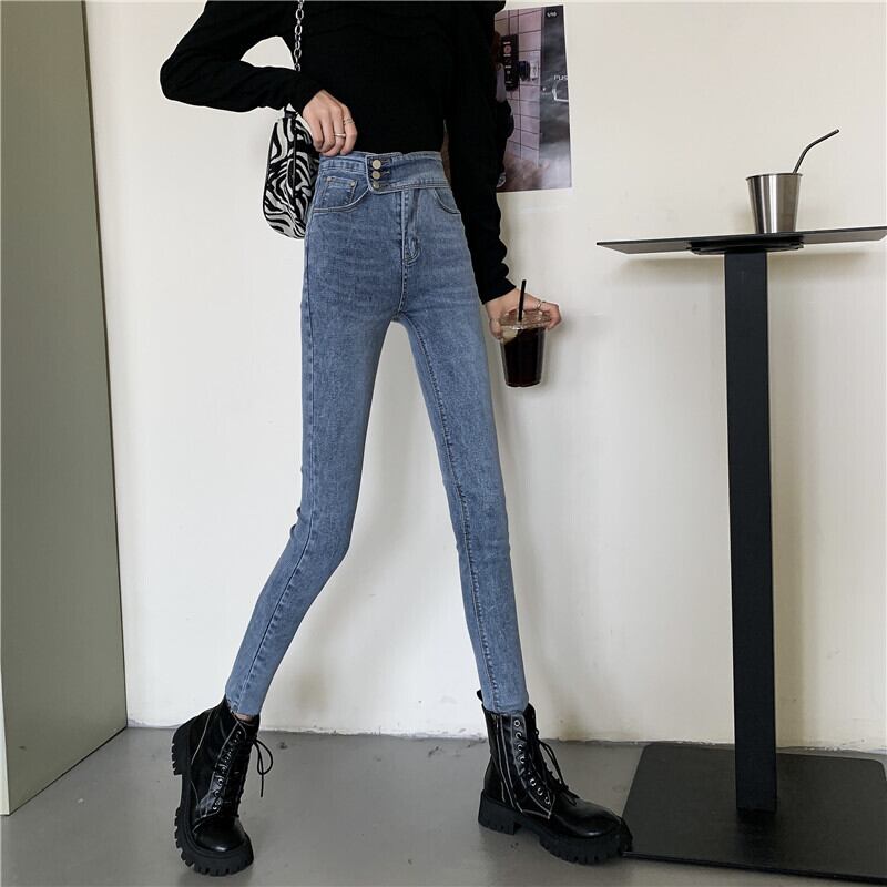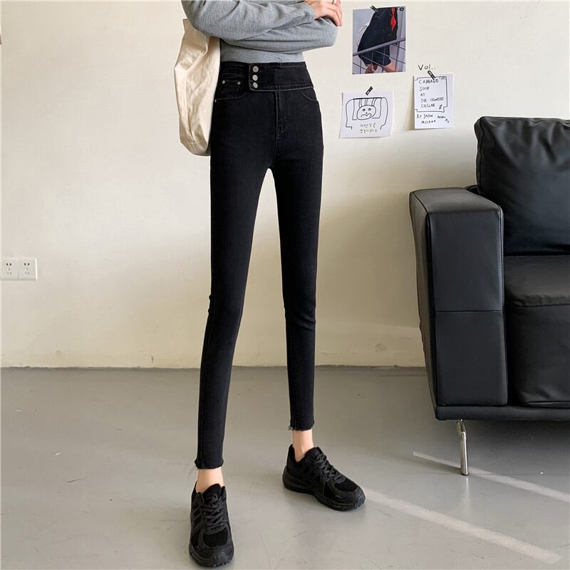 ジーンズ ストレッチオータムウィンターカジュアルハイウェストウェストブラックパンツ エラスティック 伸縮 秋物 冬物 ブラックストロベリース87126253523
