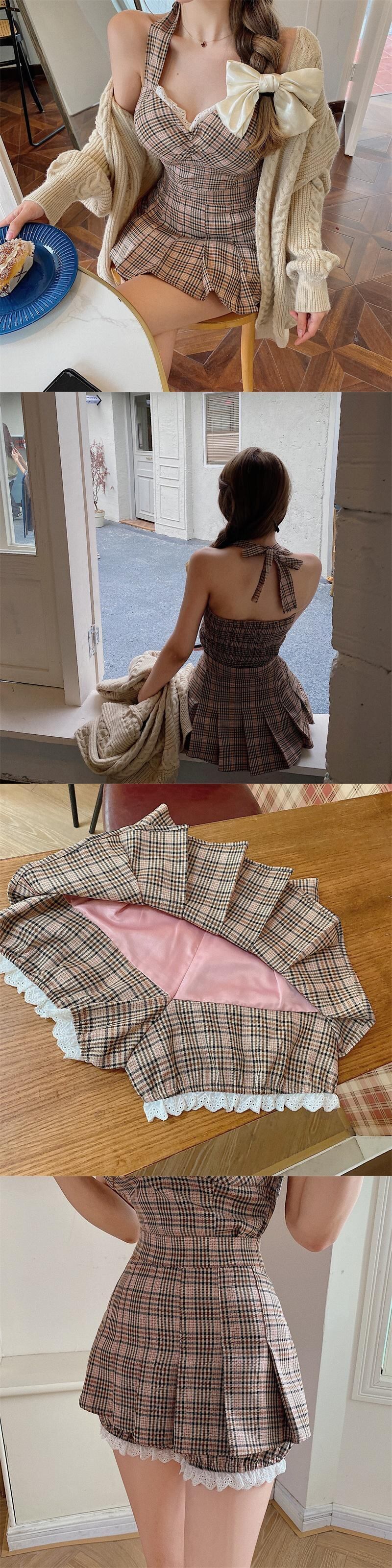 色:プリーツキュロット,ズボン,セーターコート,格子縞のスリング