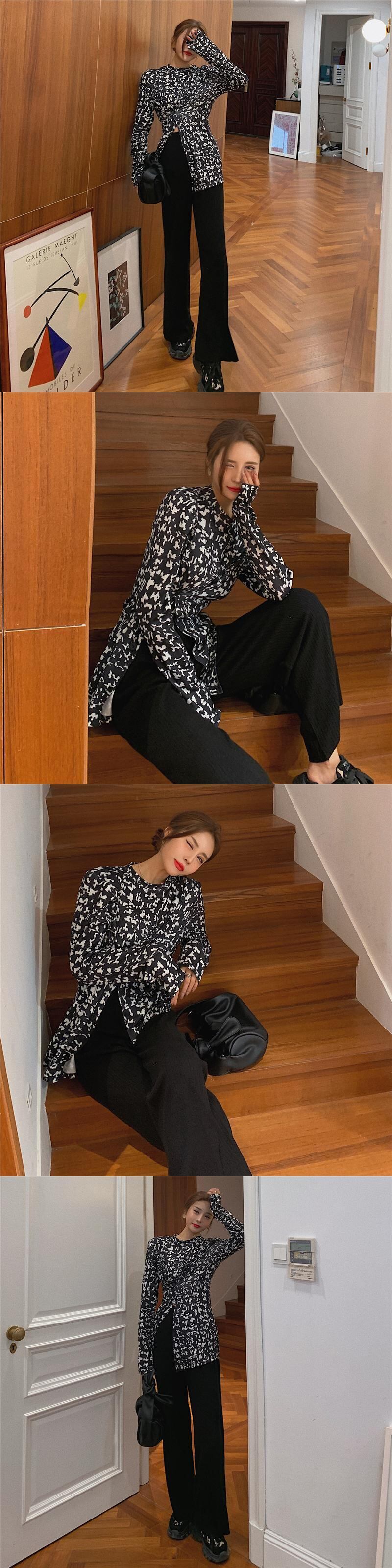 Tシャツ シャツ レオパードプリント柄カラーオータムウィンターブラックルーズトップス ロング 秋物 冬物 ブラックストロベリース25957464981