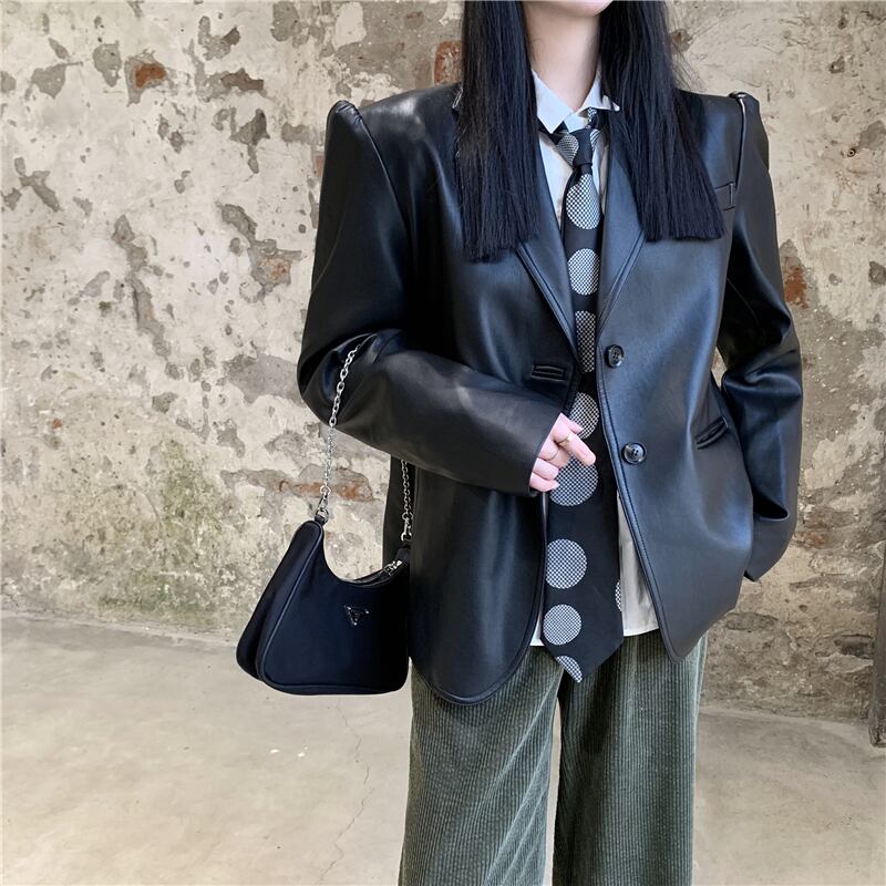 レザージャケット ブラックルーズトップス オータムウィンター 秋物 冬物 ブラックストロベリース11180425127