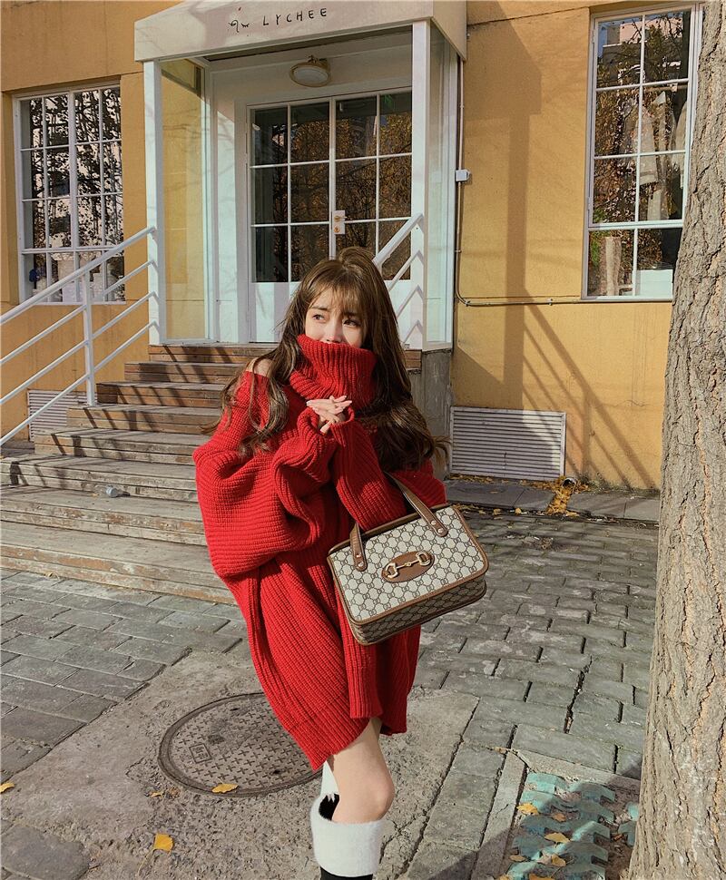 セーター ルーズレッドオータムウィンタースタンダードトップス レトロ 秋物 冬物 ブラックストロベリース56370042577