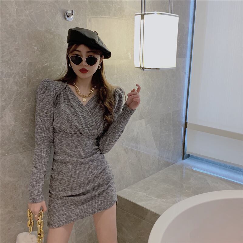 ニットセーター ドレス オータムウィンターショートスカート スリム薄手 秋物 冬物 ブラックストロベリース436692893