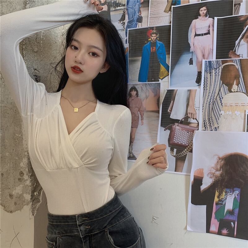 Tシャツ オータムウィンタースタイル ロング コルセット 秋物 冬物 Vネック ブラックストロベリース96165325380