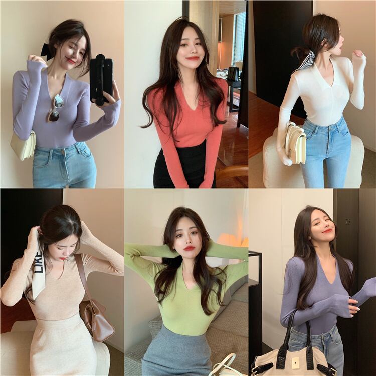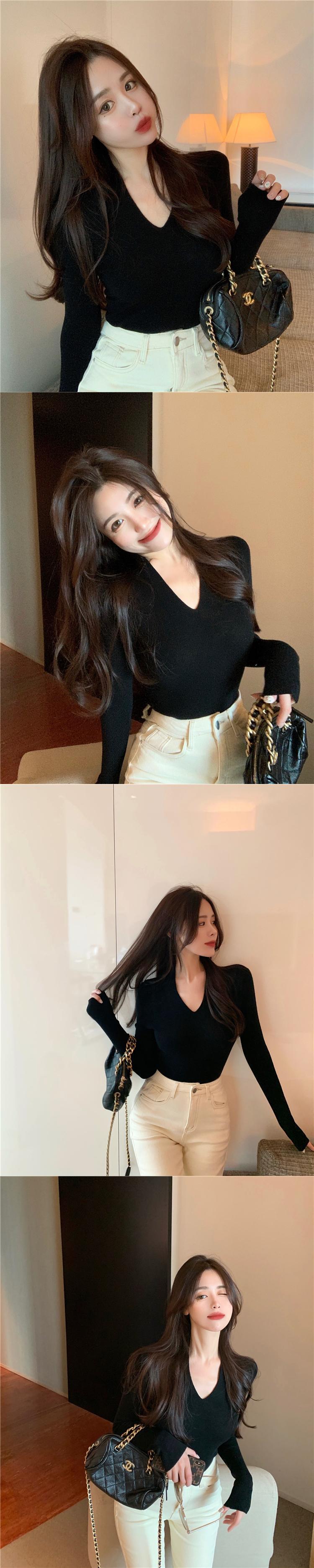 ニットセーター Vネックスリムホワイトプルオーバー トップス シャツ オータム 秋物 ウィンター 冬物 ブラックストロベリース59974531290