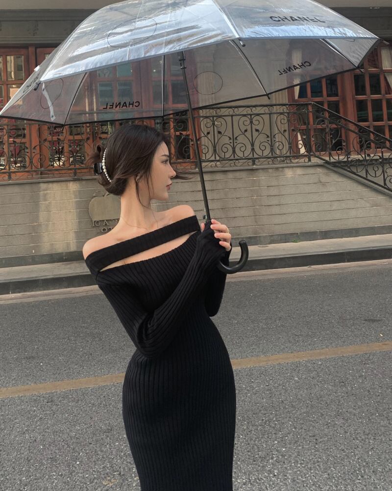 ニットドレス スカート レディースオータムウィンタースタイルブラックミディ ロング 秋物 冬物 ブラックストロベリース12200746378