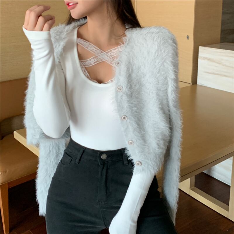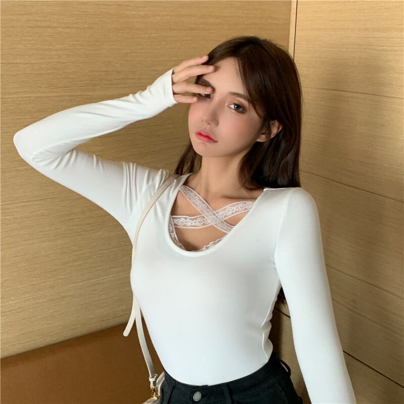 レースシャツ Tシャツ オータムウィンタースタイルブラックスリムトップス ロング 秋物 冬物 ブラックストロベリース61709092435