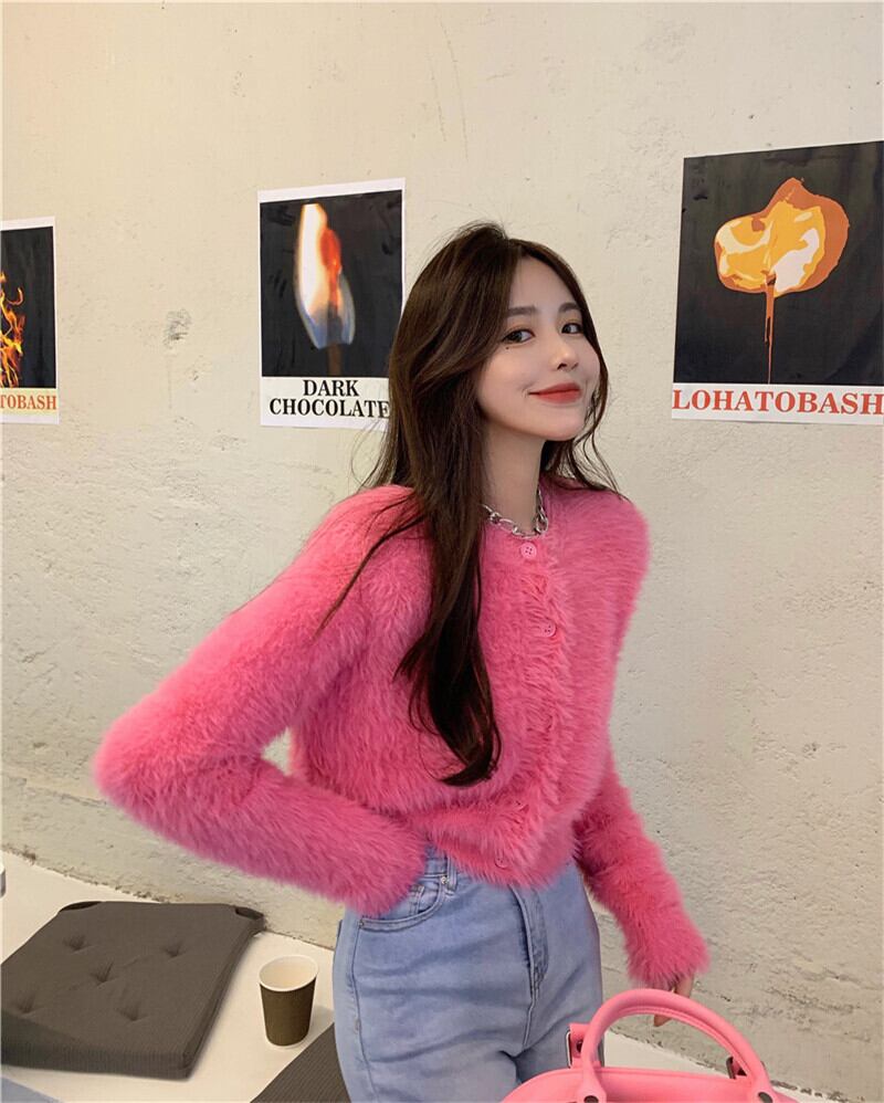 セーター カーディガンジャケット オータムウィンタールーズニットトップス ピンク 秋物 冬物 ブラックストロベリース21500042975