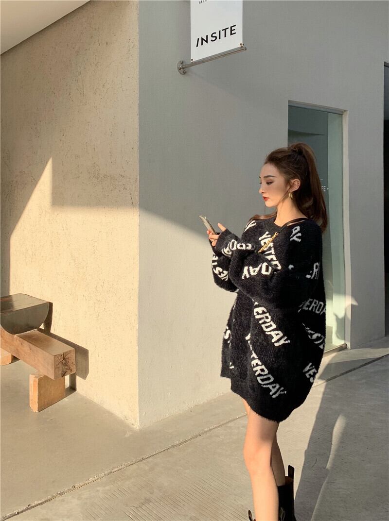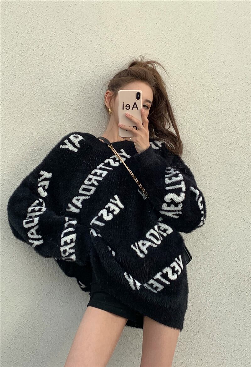 セーター ブラックニットオータムウィンターラウンドネックジャケット トップス 秋物 冬物 Oネック ブラックストロベリース54223800856