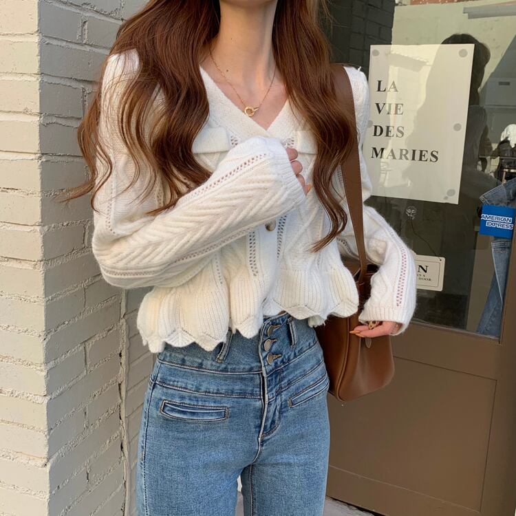 ニットセーター カーディガンジャケット オータムウィンタースタイルルーズショートトップス ロング 秋物 冬物 ブラックストロベリース27546738008