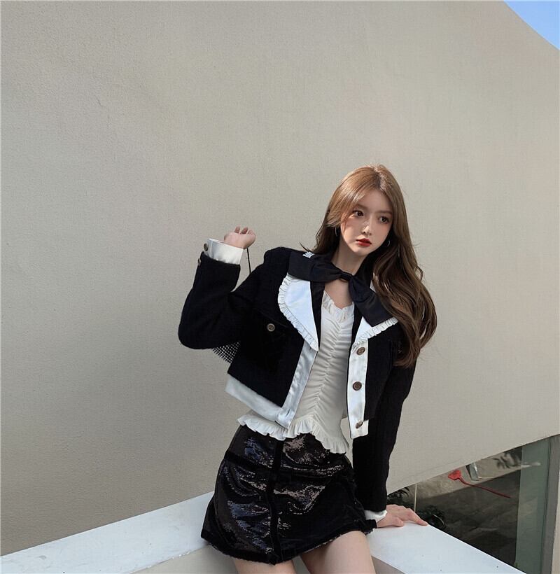 ジャケット ブラックショートスタイルオータムウィンター 秋物 冬物 ブラックストロベリース35489138330