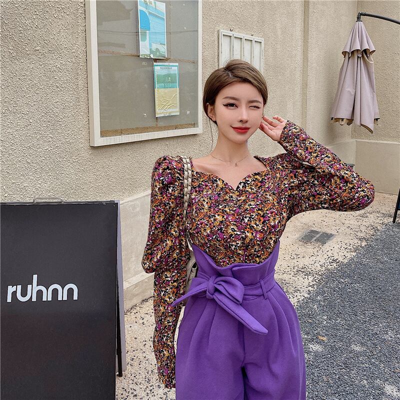 コーデュロイフローラルシャツ オータムウィンタートップス スタンダードカラーショート長袖スリーブ ロング レトロ 秋物 冬物 花柄 スクウェア ブラックストロベリース4480680495