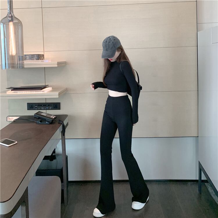 色:グレートップ,ブラックトップ,灰色のベルボトム,ブラックベルボトム