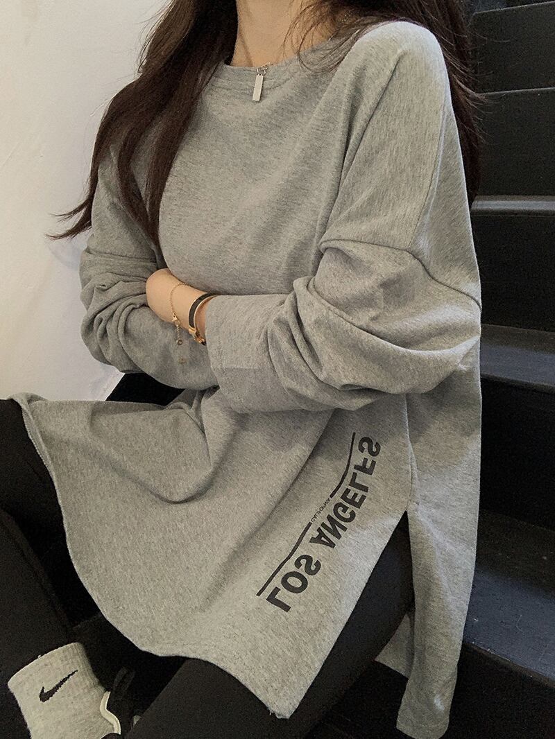 Tシャツ シャツ ルーズオータムウィンターグレートップス ロング 秋物 冬物 ブラックストロベリース90666122369