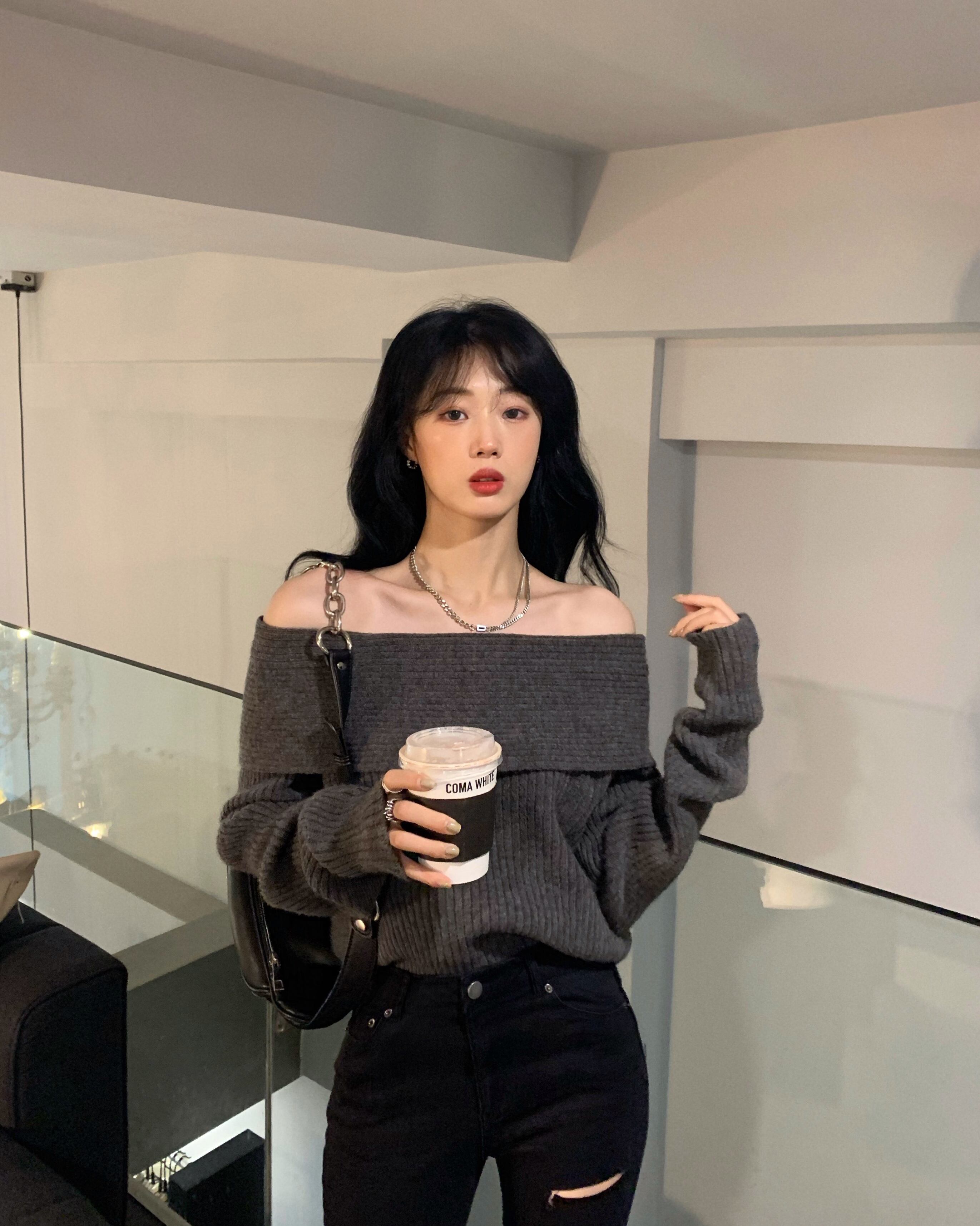 セーター オータムウィンターニットトップス ロング 秋物 冬物 ブラックストロベリース81303758345