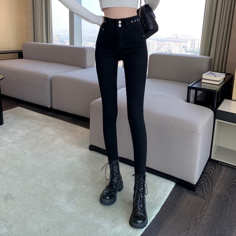 ジーンズ ハイウェストウェスト薄手オータムウィンター刺繍パンツ 秋物 冬物 ブラックストロベリース42467765458