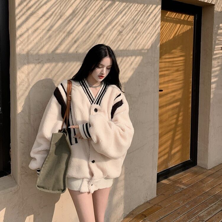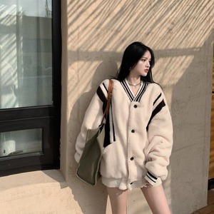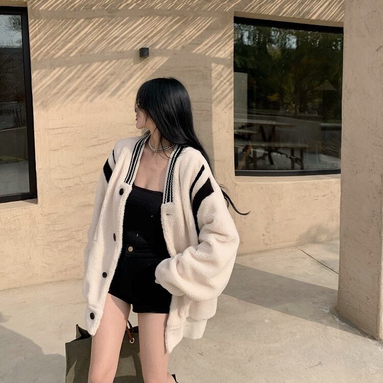 ウールショートジャケット レディースルーズベルベットホワイトトップス オータムウィンター 秋物 冬物 ブラックストロベリース46136911335