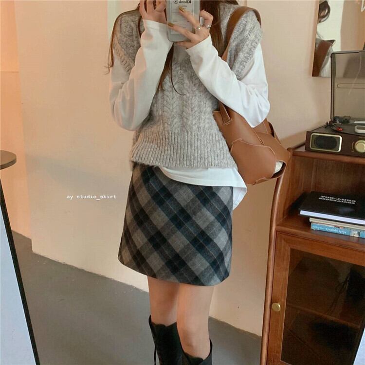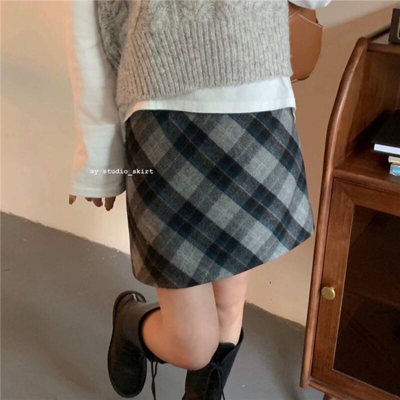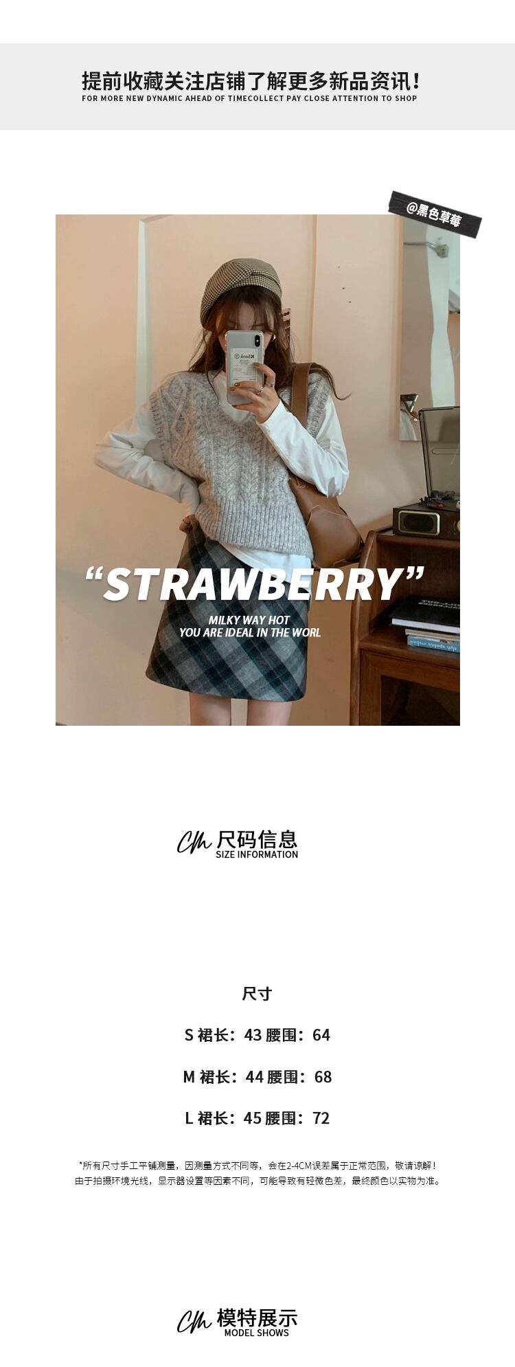 格子柄スカート ハイウェストウェスト薄手Aラインショートオータムウィンターグレー 秋物 冬物 ブラックストロベリース63631642691