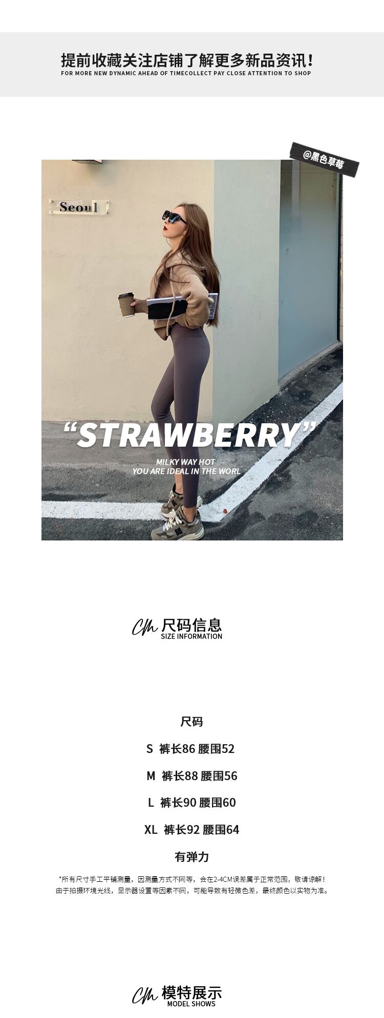 レギンス ハイウェスト薄手ブラックオータムウィンターパンツ 秋物 冬物 ブラックストロベリース7386909122