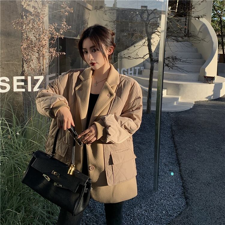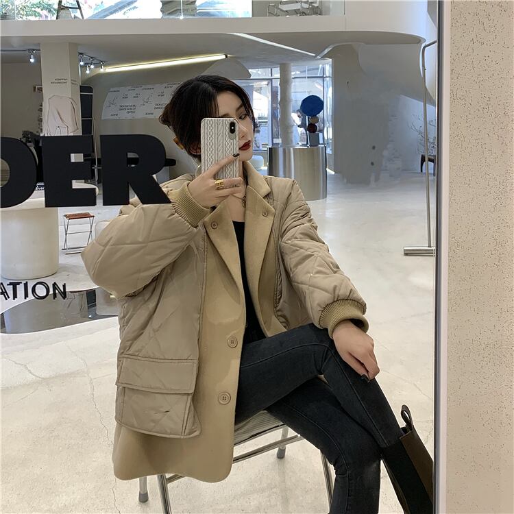 コート ルーズオータムウィンタースタイル コットン 秋物 冬物 ステッチ ブラックストロベリース62218066672