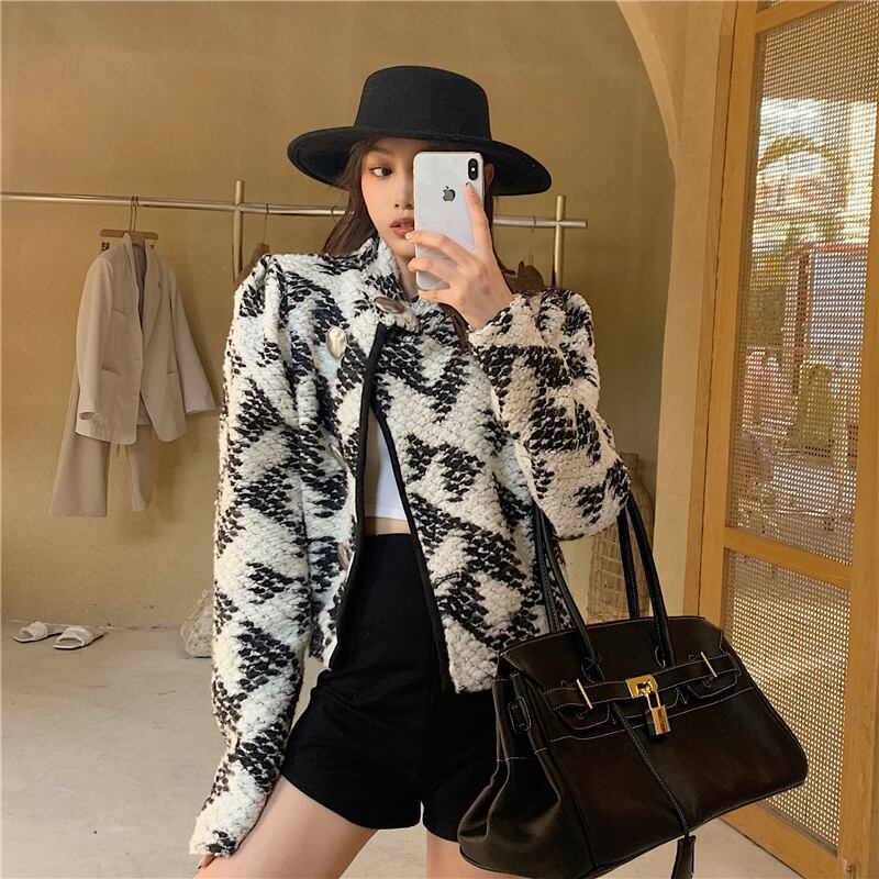 ショートコート スプリングオータムツィードカーディガントップス 春物 秋物 ブラックストロベリース28931886781