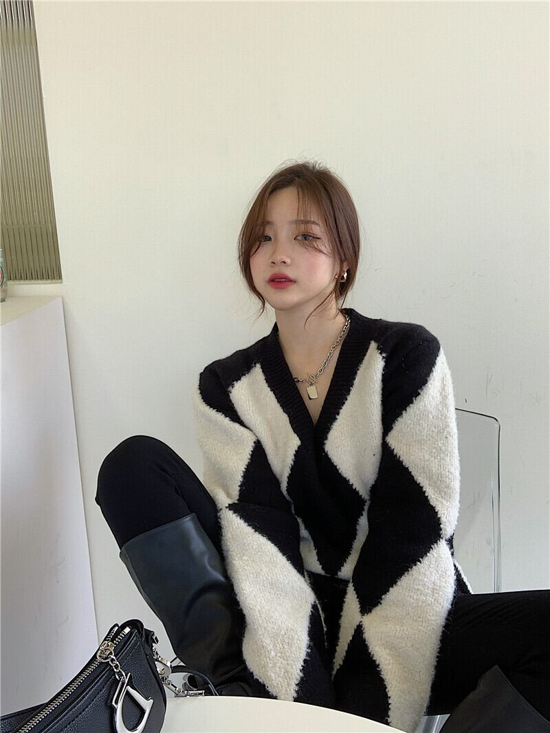 セーター ルーズブラックホワイトニットスプリングトップス 春物 ブラックストロベリース23246547255