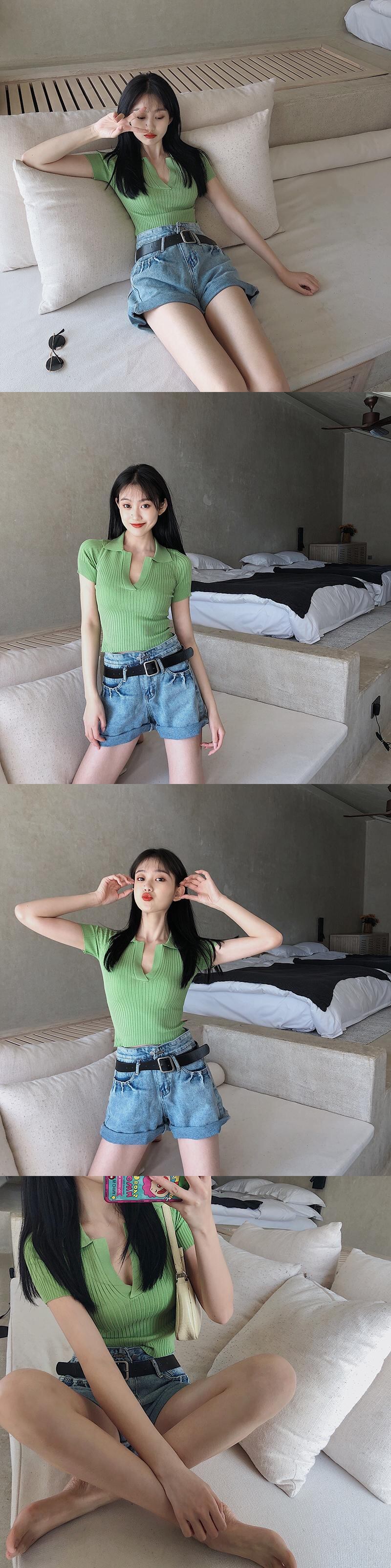 ニットセーター カラーショートスリムホワイトシャツ スプリングトップス 春物 ブラックストロベリース37917944023