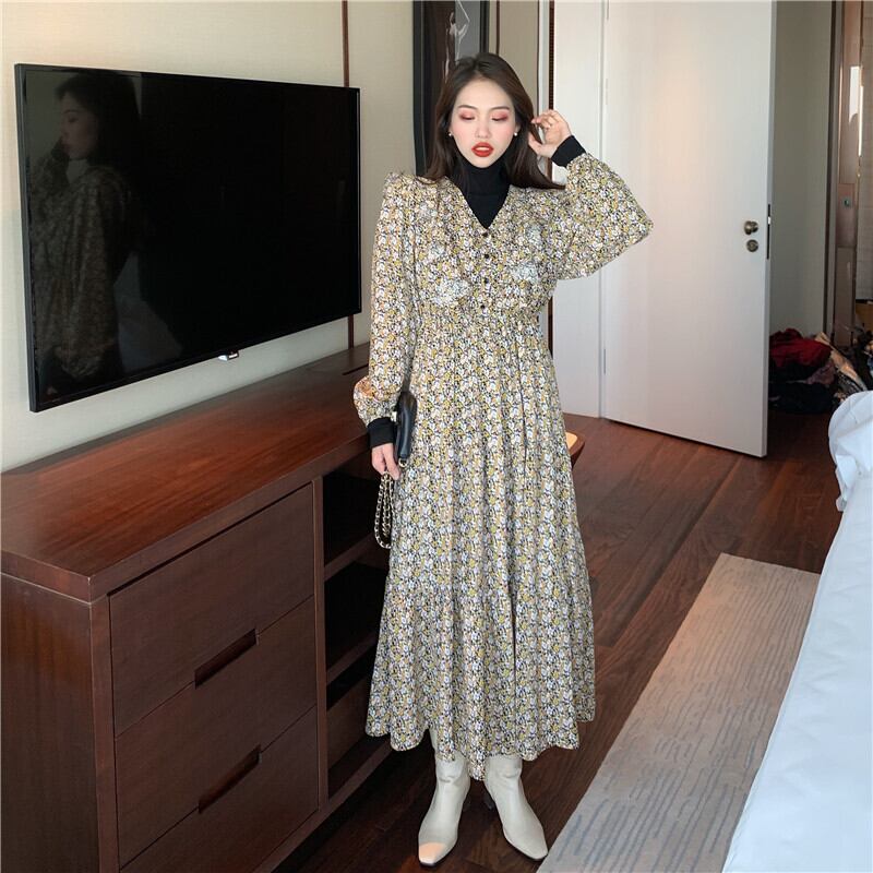 ドレス スタンダードフローラルスカート スプリングウェスト薄手 ロング レトロ 春物 花柄 ブラックストロベリース649599495