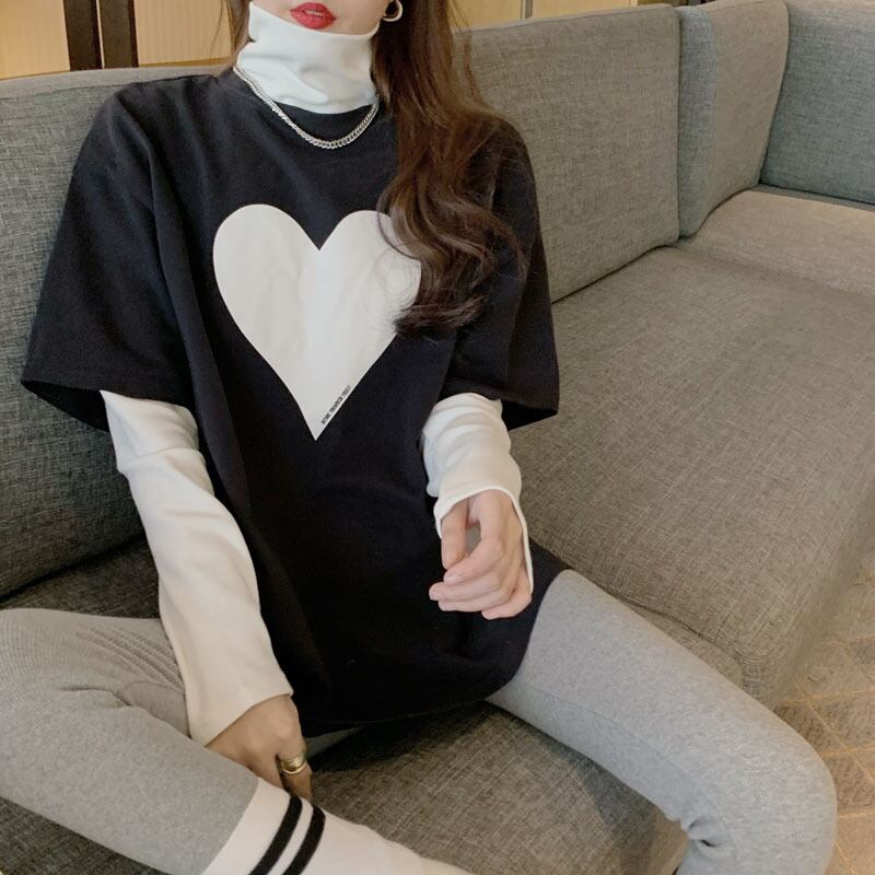 Tシャツ シャツ ルーズスプリング長袖スリーブトップス ロング 春物 ブラックストロベリース89620669604