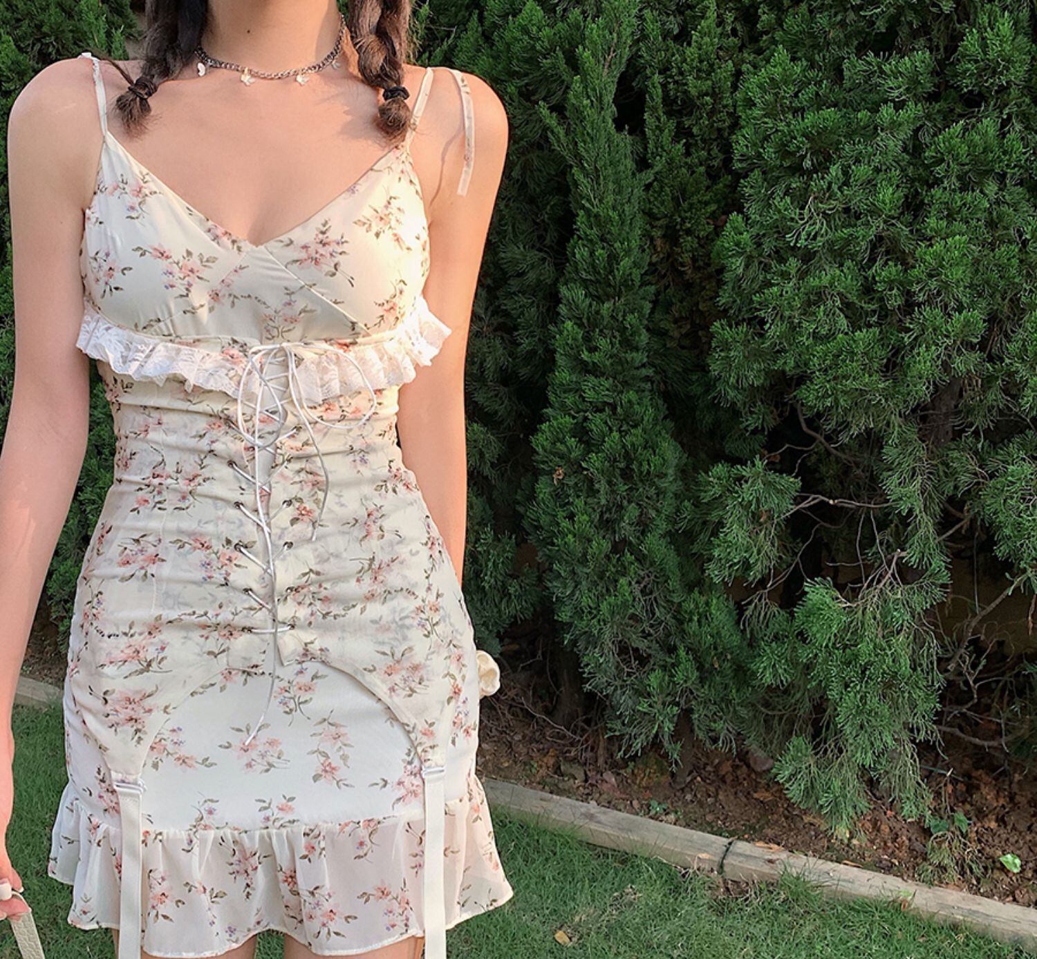 フローラルスカート スプリングサマーレーススタンダードショートドレス レトロ 春物 夏物 花柄 ブラックストロベリース42851567206
