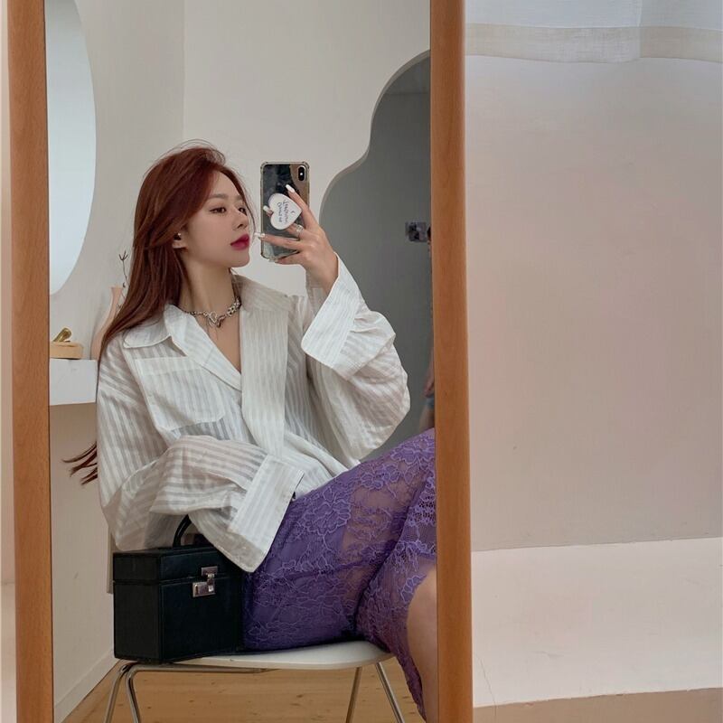 スカート レーススプリングハイウェスト薄手 春物 ブラックストロベリース48545462547