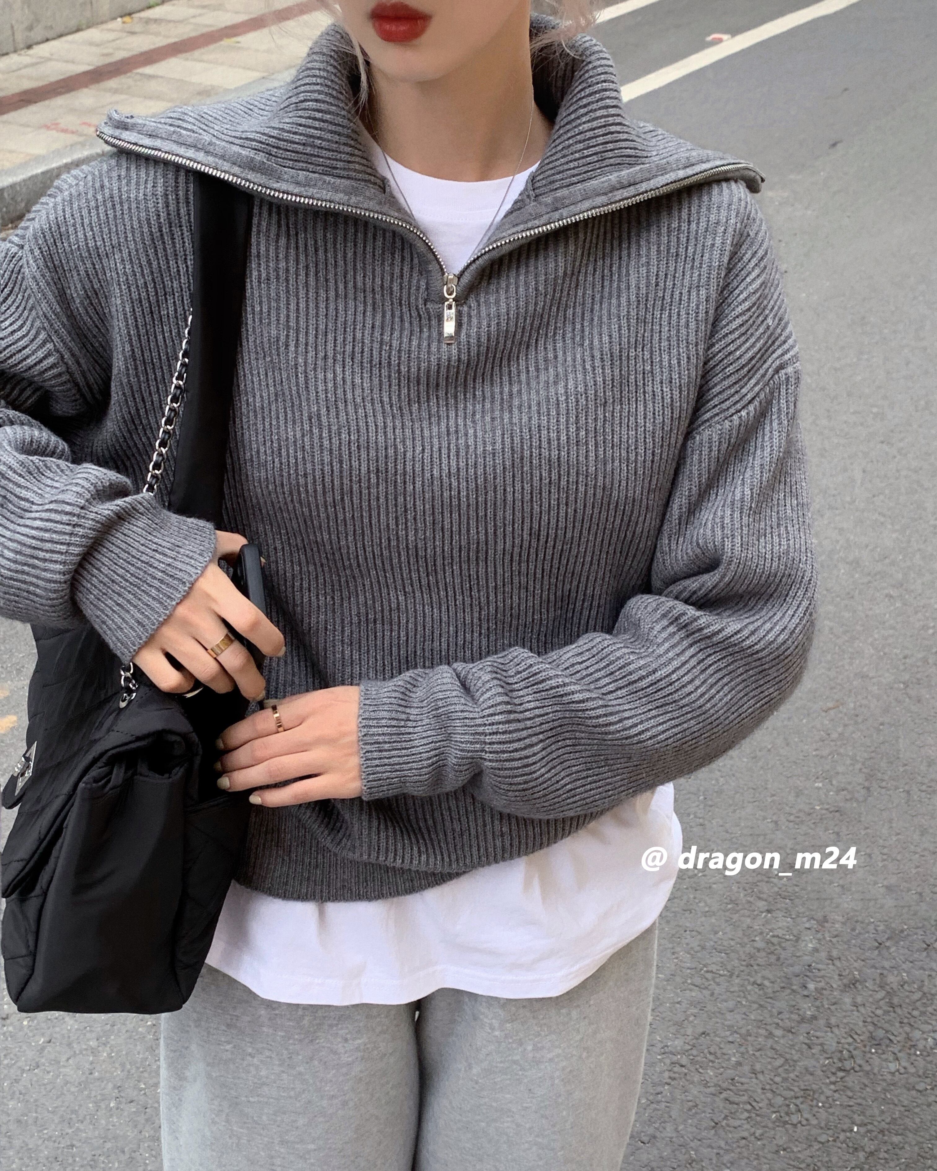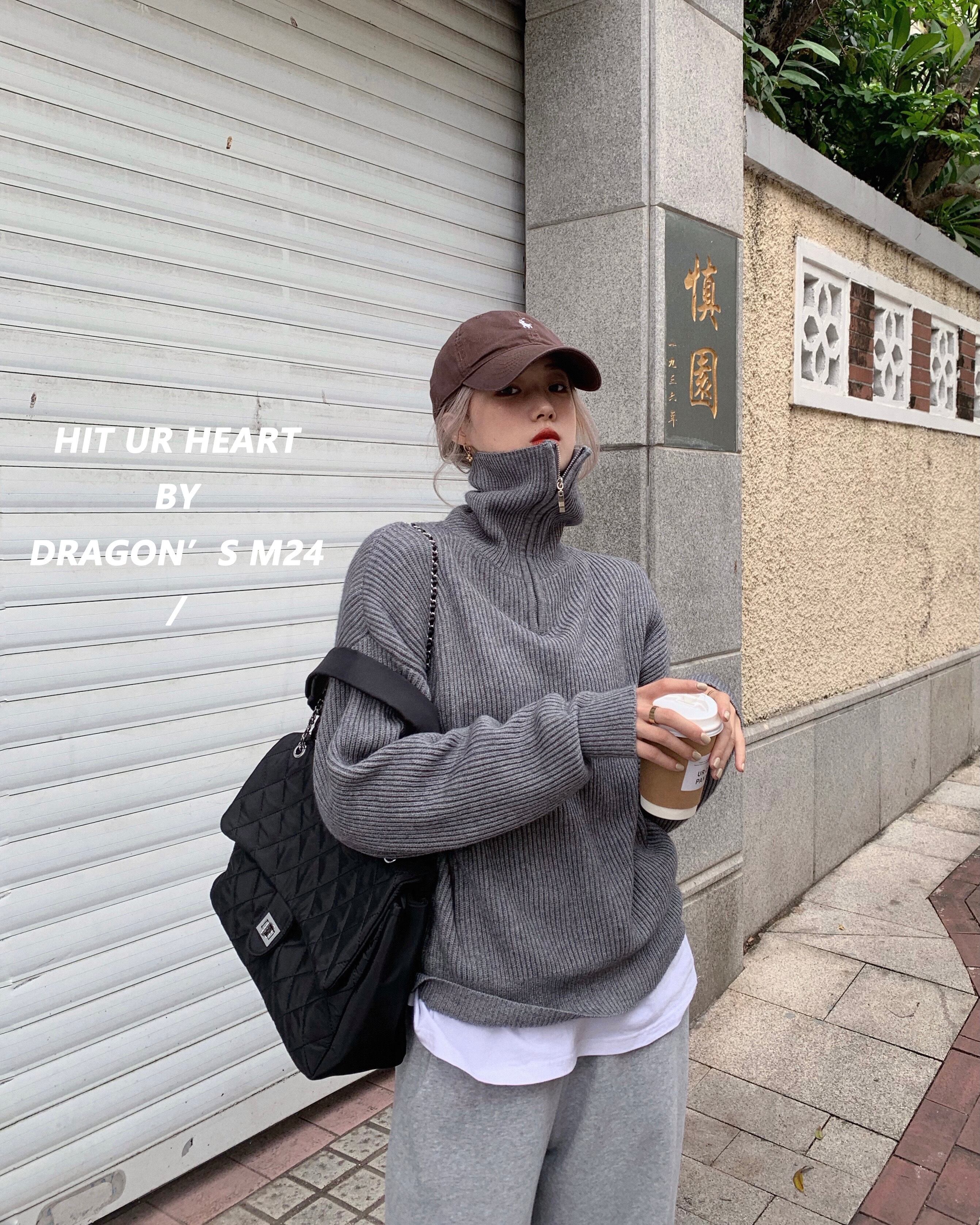 セーター ジッパールーズグレーニットスプリングスタンダードスタイルトップス レトロ 春物 ブラックストロベリース43700575457